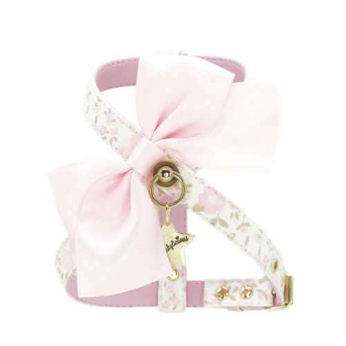 El arnés Blossom Bow Rosa de Funkylicious está realizado en tela y eco-piel tipo napa muy suave y resistente y decorado con un lacito de satén rosa de 85mm de ancho.