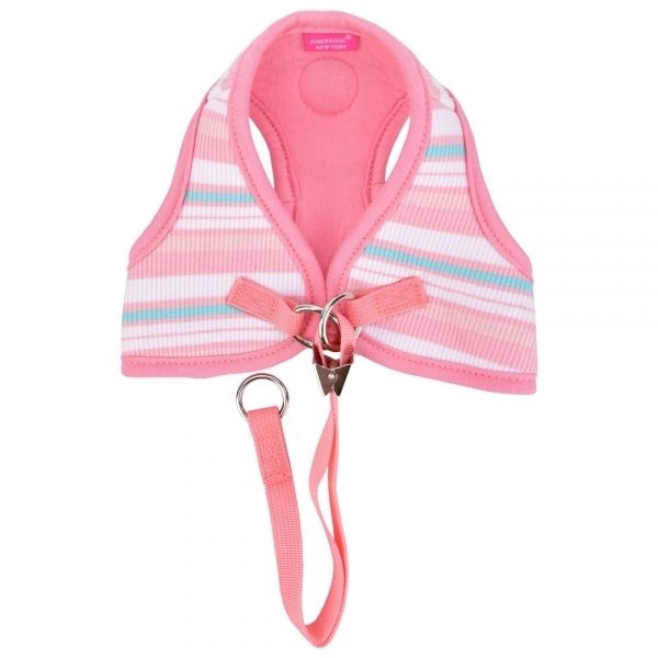 El arnés Abby de Pinkaholic proporciona una gran sujección. Disponible en color rosa, es muy veraniego con su estampado de rallitas. Lleva un parche bordado de Pinkaholic. Se cierra en el lomo lo que proporciona una gran seguridad y puede ajustarse su tamaño.