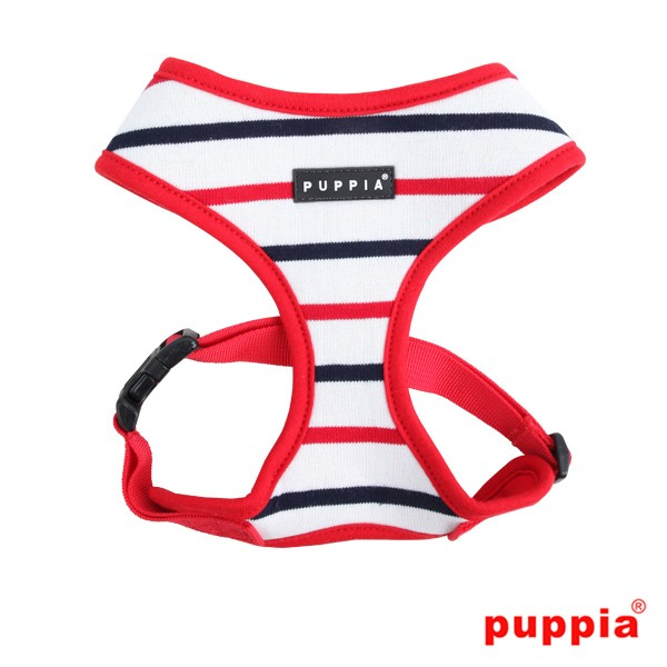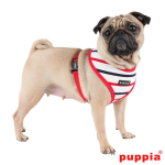 El arnés Eos de Puppia tiene un diseño muy bonito con su estampado con rayas de tipo marinero. Gracias a su cómodo diseño no crea ninguna tensión en el cuello. Totalmente recomendado por veterinarios.