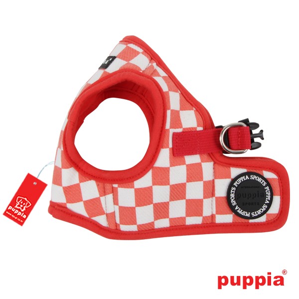 El arnés Grand Prix tipo chaleco de Puppia tiene un diseño muy bonito con su estampado de cuadritos. Gracias a su cómodo diseño no crea ninguna tensión en el cuello. Lleva un sello de goma y cierre seguro con velcro.