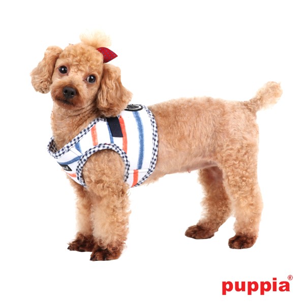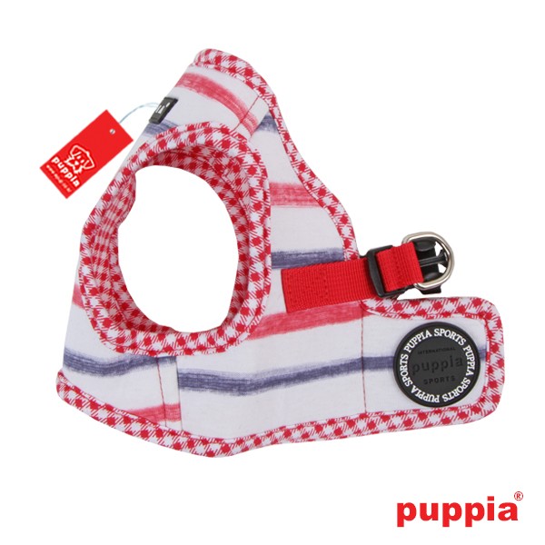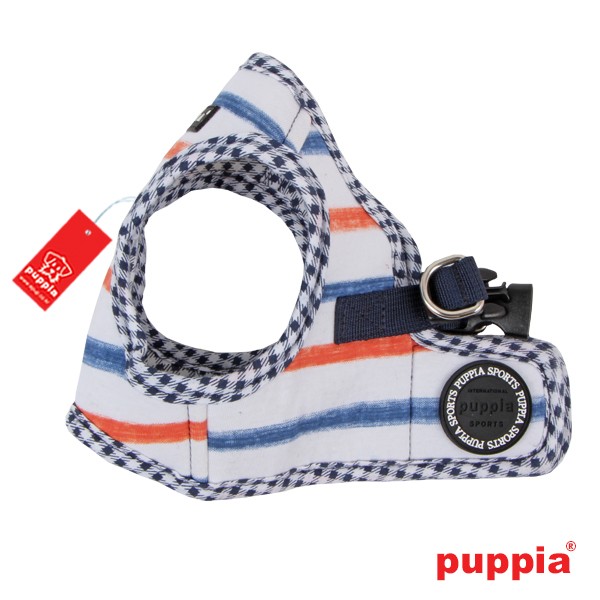 El arnés Legend tipo chaleco de Puppia tiene un bonito estampado de rallas. Los bordes del arnés tienen un estampado de cuadritos. Gracias a su cómodo diseño no crea ninguna tensión en el cuello. Lleva un sello de goma y cierre seguro con velcro.