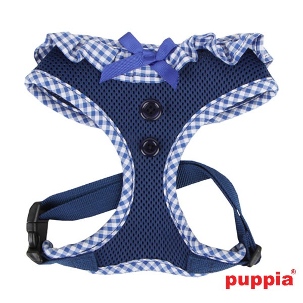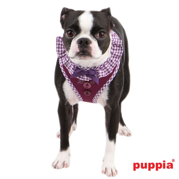 El arnés Vivian de Puppia tiene un diseño muy bonito. Lleva un cuello con estampado de cuadritos y un lacito. Lleva dos botones en el pecho. Ajustable en la zona del pecho. Gracias a su cómodo diseño no crea ninguna tensión en el cuello. Totalmente recomendado por veterinarios.