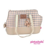 Precioso bolso de la marca Pinkaholic. Muy estiloso, con un precioso estampado de cuadritos. Tiene un lazo debajo de la abertura por la que el perro puede sacar la cabeza. Lleva un correa de seguridad para evitar que el perro se salga del bolso. Perfecto para perros de hasta 3.5 kilos.
