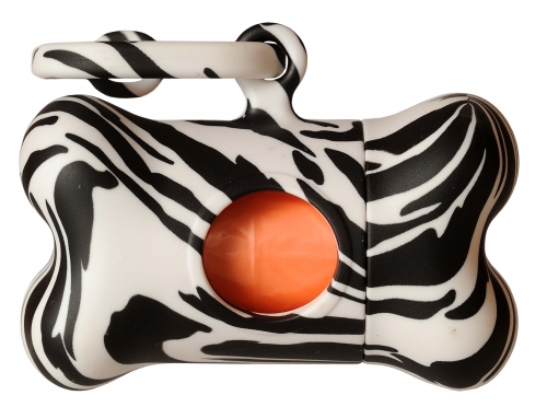 Porta bolsas Bon Ton Cebra de United Pets. Incluye un rollo de 10 bolsas biodegradables.