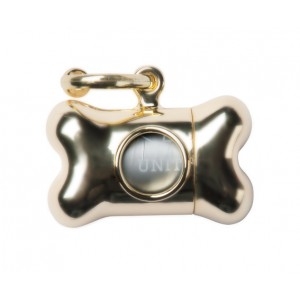 Porta bolsas Bon Ton Nano Gold de United Pets. Incluye un rollo de 10 bolsas biodegradables.