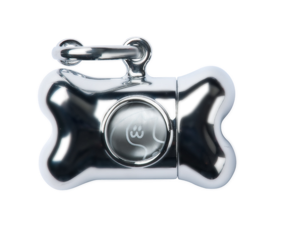 Porta bolsas Bon Ton Nano Silver de United Pets. Incluye un rollo de 10 bolsas biodegradables.