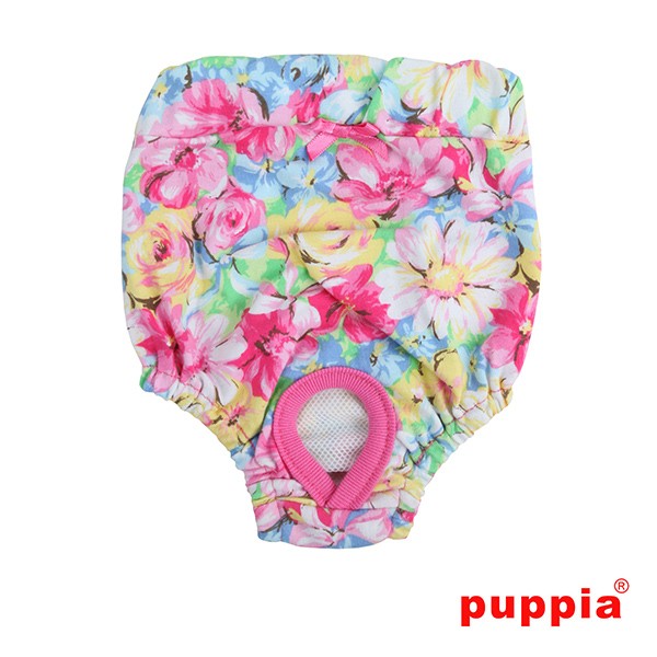 Braguitas sanitarias de la marca Puppia. Tienen un diseño muy veraniego con su estampado de flores. A juego con la camiseta Spring Garden.
