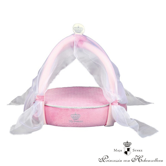 Cama con dosel My Princess. Funda de peluche de pelo corto. Relleno de gomaespuma. Con elegante bordado de la colección My Princess y cordón decorativo con borlas. Base de nylon antideslizante. Lavable a mano hasta 30ºC. Funda del cojín lavable a máquina hasta 30ºC.