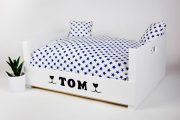 Nuestras mascotas no querrán salir de ella, esta camita, de tonos en blanco, se caracteriza por el conford principalmente por el cojín grande y blandito que tiene, además contiene una funda para cubrirlo y dos cojines pequeños decorativos (relleno y funda), para que todo vaya a juego. Tiene dos asas a los lados para que sea fácil de colocar en el rincón de la casa en el que tu macota esté más agusto. Además es una de las camas que Dear Friend personaliza con el nombre de vuestras mascotas. Sólo tienes que dejarnos en un comentario al hacer tu pedido el nombre de tu mascota.