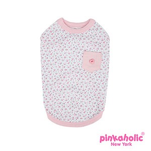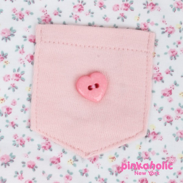Preciosa camiseta de la marca Pinkaholic con estampado de florecillas. Lleva un bolsillo rosa a la espalda. Ideal para la primavera y verano.