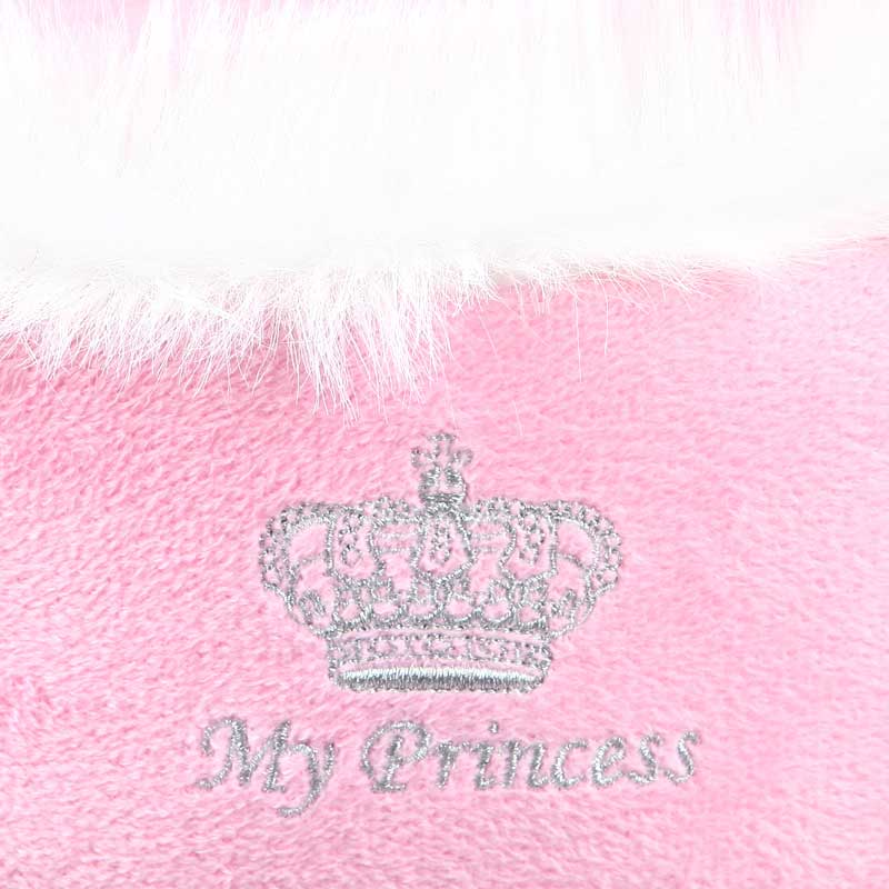 Cojín My Princess. De funda de peluche de pelo corto. Acolchado. De 8 a 10 cm de relleno de fibra de poliéster (en una sola pieza). Con elegante bordado de la colección My Princess. Base de nylon antideslizante. Funda lavable a máquina hasta 30º C: relleno lavable a mano hasta 30º C.