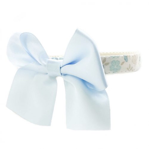 El collar Blossom Bow Azul de Funkylicious está realizado tela y eco-piel cosida y decorado con un lazo de satén de 85mm.