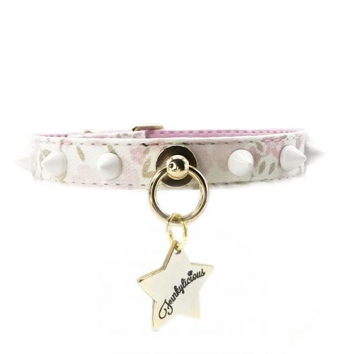 El collar Blossom Punk Rosa de Funkylicious está realizado tela y eco-piel cosida y decorado con remaches acrílicos muy seguros.