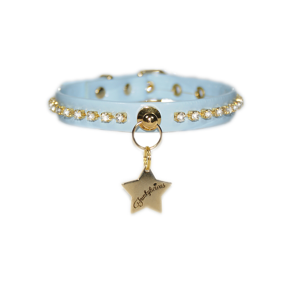 El collar Luxury Party de Funkylicious está realizado en charol de 13mm decorado con strass cosidos a mano. Para que los principes y princesas de la casa brillen con luz propia.
