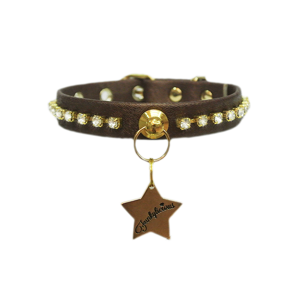 El collar Luxury Party de Funkylicious está realizado en charol de 13mm decorado con strass cosidos a mano. Para que los principes y princesas de la casa brillen con luz propia.