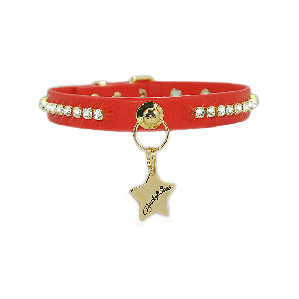 El collar Luxury Party de Funkylicious está realizado en charol de 13mm decorado con strass cosidos a mano. Para que los príncipes y princesas de la casa brillen con luz propia.