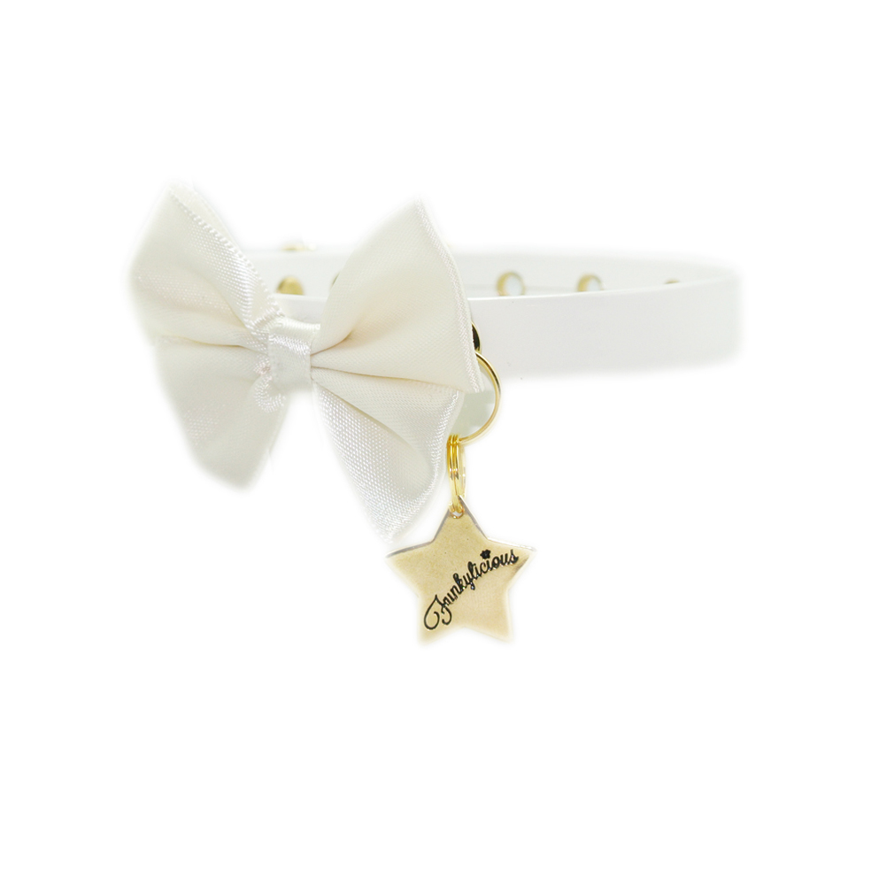 El collar Romantic de Funkylicious está realizado en charol de 13mm con lazo de raso blanco.