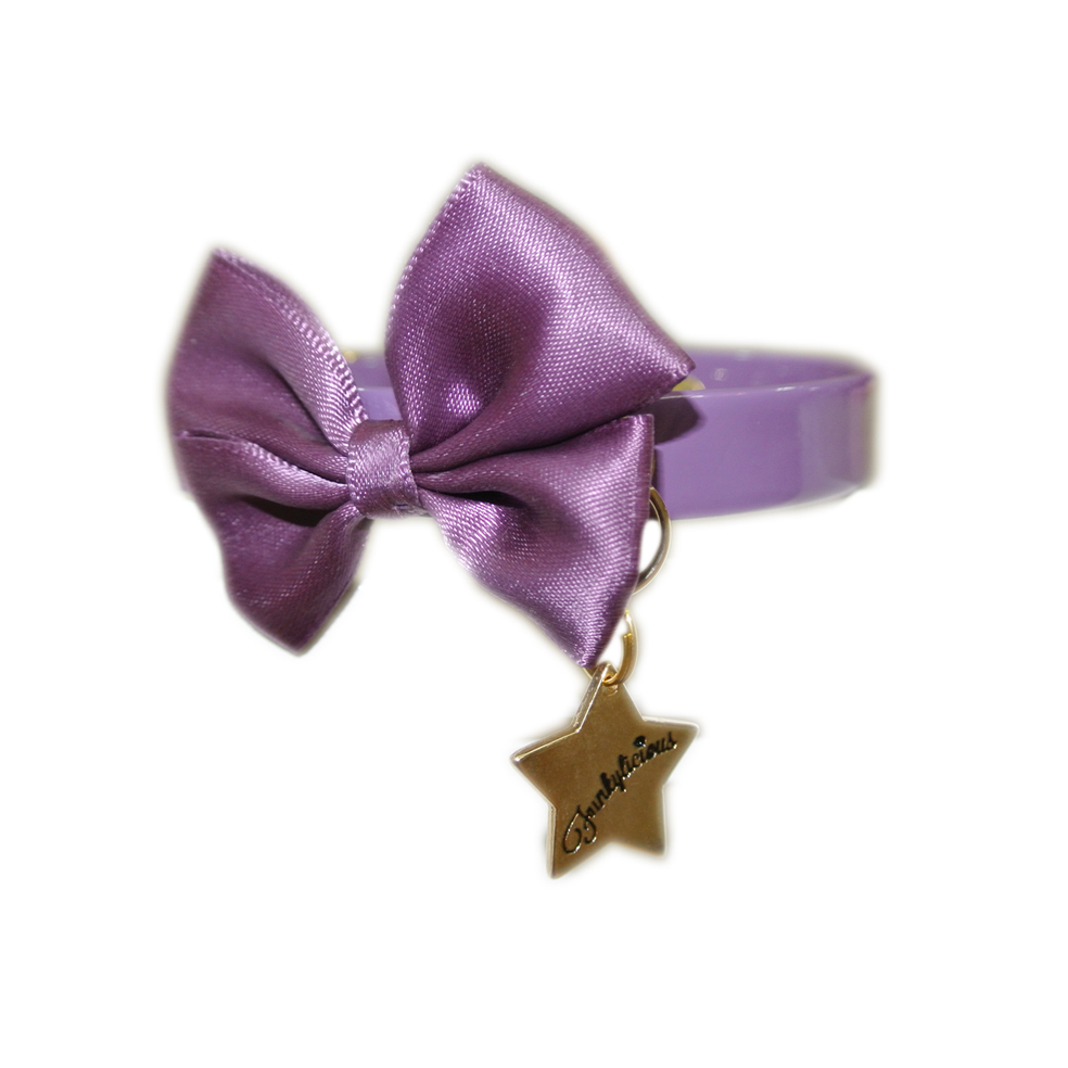 El collar Romantic de Funkylicious está realizado en charol de 13mm con lazo de raso violeta.
