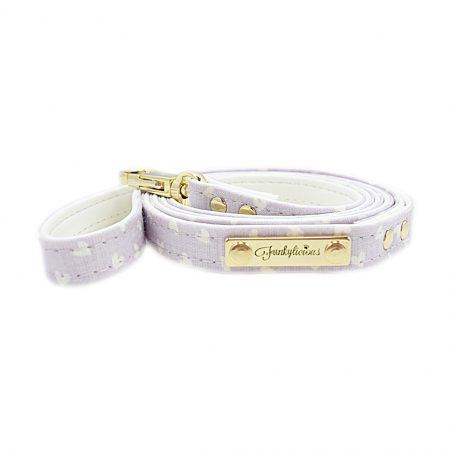 La correa Cute Lila de Funkylicious está realizada en eco-piel por el interior y textil con corazones en el exterior cosida.