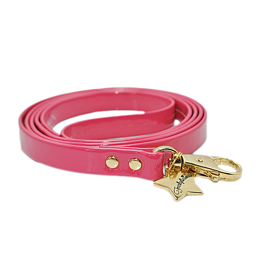 La correa Fresa de Funkylicious realizada en tira de charol sintético de 13 mm. A juego con el arnés Luxury Fresa y el collar Luxury Fresa.