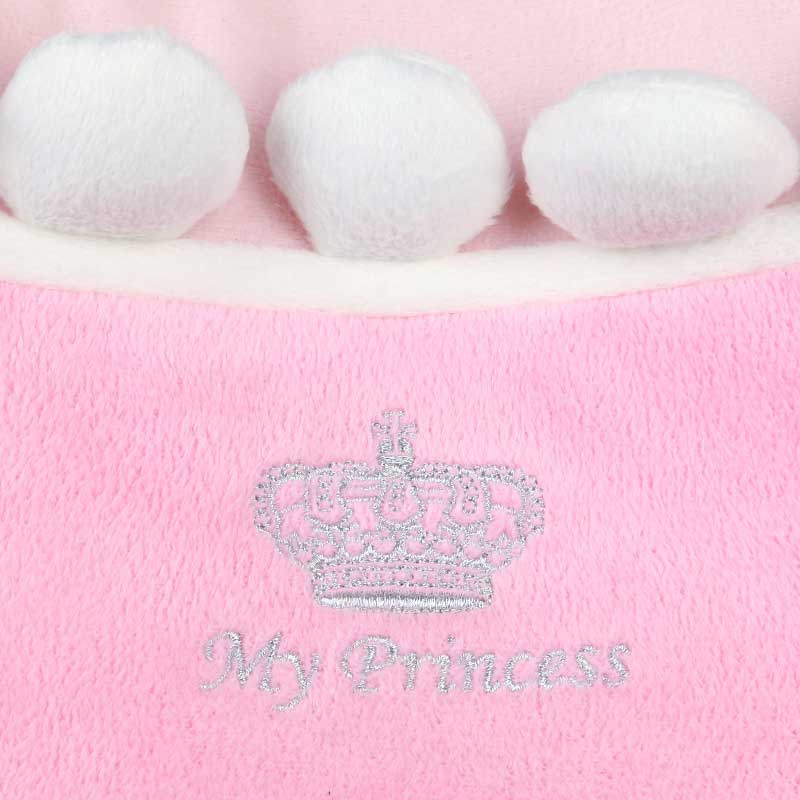 Cueva My Princess. Funda de peluche de pelo corto. Relleno de gomaespuma. Cojín reversible y extraíble, acolchado. Con elegante bordado de la colección My Princess. Base de nylon antideslizante. Lavable a mano hasta 30ºC. Funda del cojín lavable a máquina hasta 30ºC.