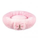 Cama donuts de pelito en color rosa hiper-suave rellena de fibra para un confort total.