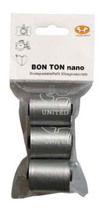 Bolsas biodegradables para Bon Ton Nano de United Pets. 3 rollos de 10 unidades